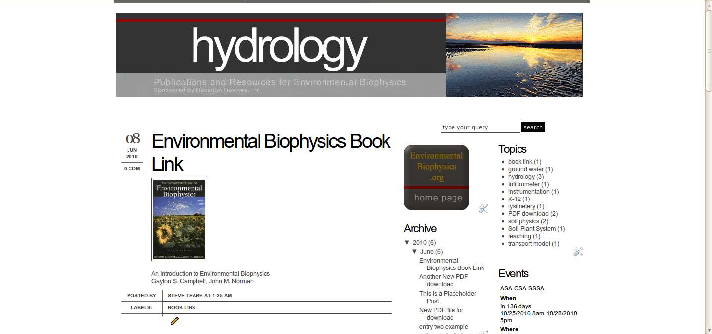 I’ve been showing the incremental process of designing “The Virtual Repository” for environmental biophysics .org. Above are two Blogger sections out of four. Each section has a header now to tie back the “feeling” of the Landing page on the main site. I’ve pushed the headers pretty hard for file size reduction. They are 15K to 20K GIFs. Some are a little grainy.